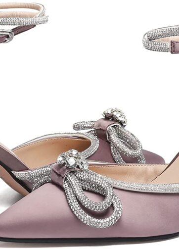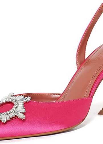 Women’s High Heeled Sandals Pointed Toe Crystal Satin Rhinestone Backless Slingback Stiletto Slip On Pumps for women