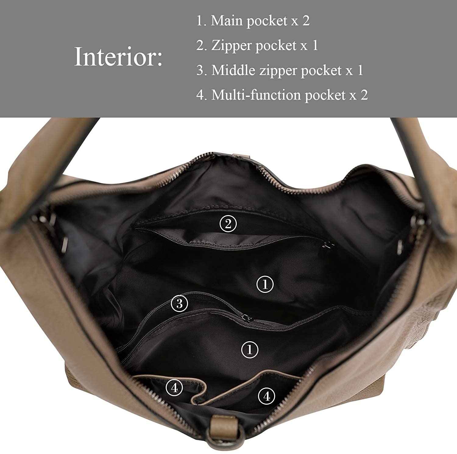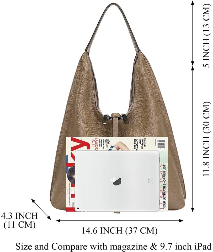 - Well-organized Structure : Ladies hobo handbags external structure included 1 back zipper pocket. Internal Structure included 1 big main compartment, 2 zipper pockets and 2 slot pockets. Large capacity well organize your daily items,such as 9.7-inch iPad, book, umbrella, wallet, water bottle, iPhone and cosmetics, etc.