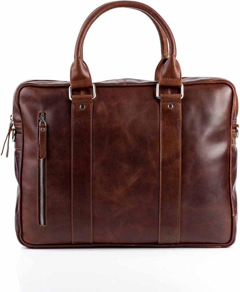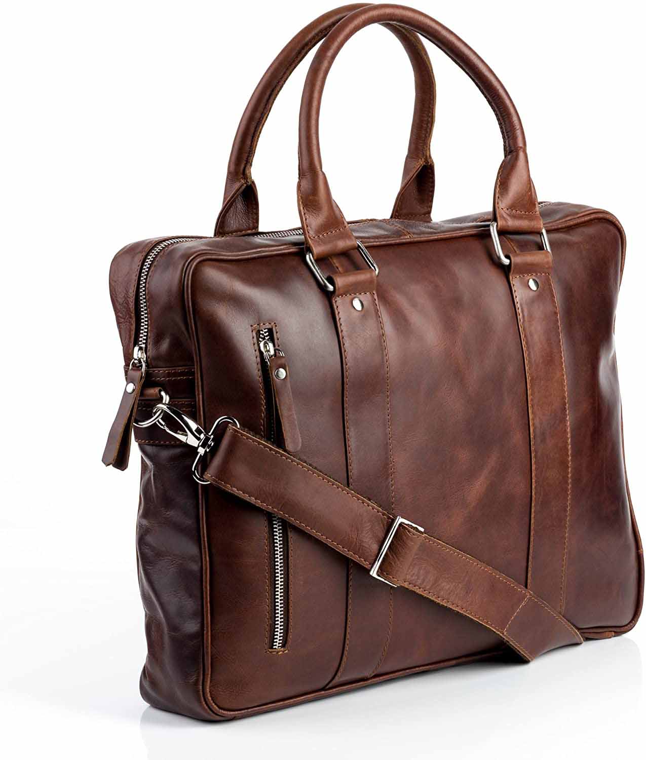 Vintage Style leather laptop bag Large business briefcase portable computer satchel Fit 15″ Laptop