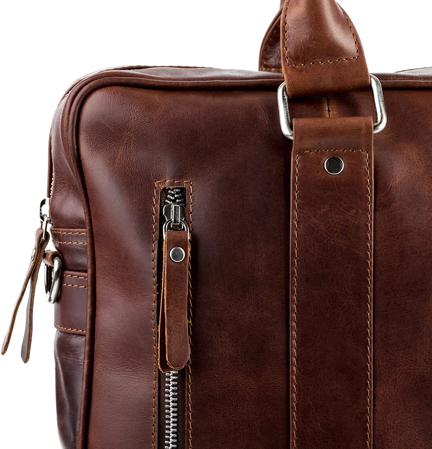 • REAL NATURAL LEATHER… 100% genuine top-grade calf leather, naturally tanned. The more you wear the bag, the morewonderful its vintage-effect gets. Proof of its quality it that you can easily rub away little scratches.